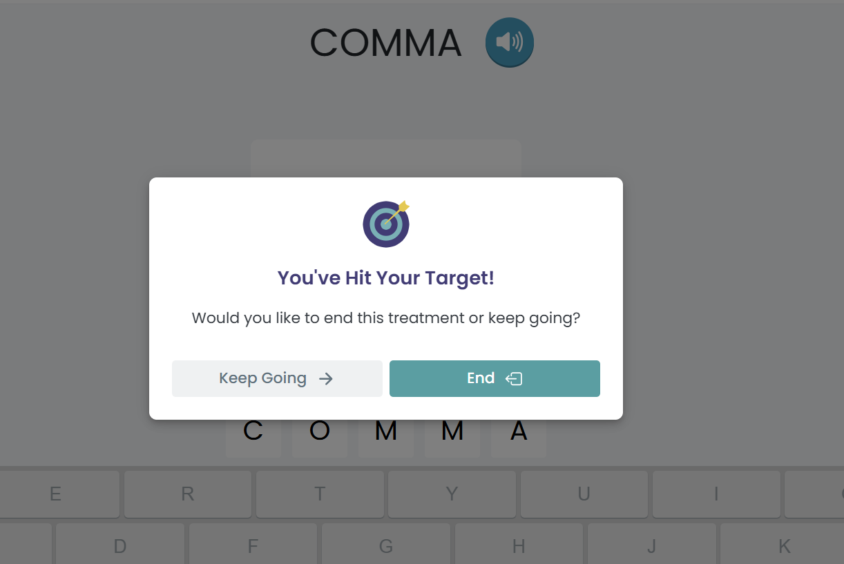Suggested Trials: If you’d like to set a trial goal, use the dropdown to choose the number of trials. Patients will see when their target is met and can stop anytime. The average time per trial is shown to help you select an appropriate amount of practice.