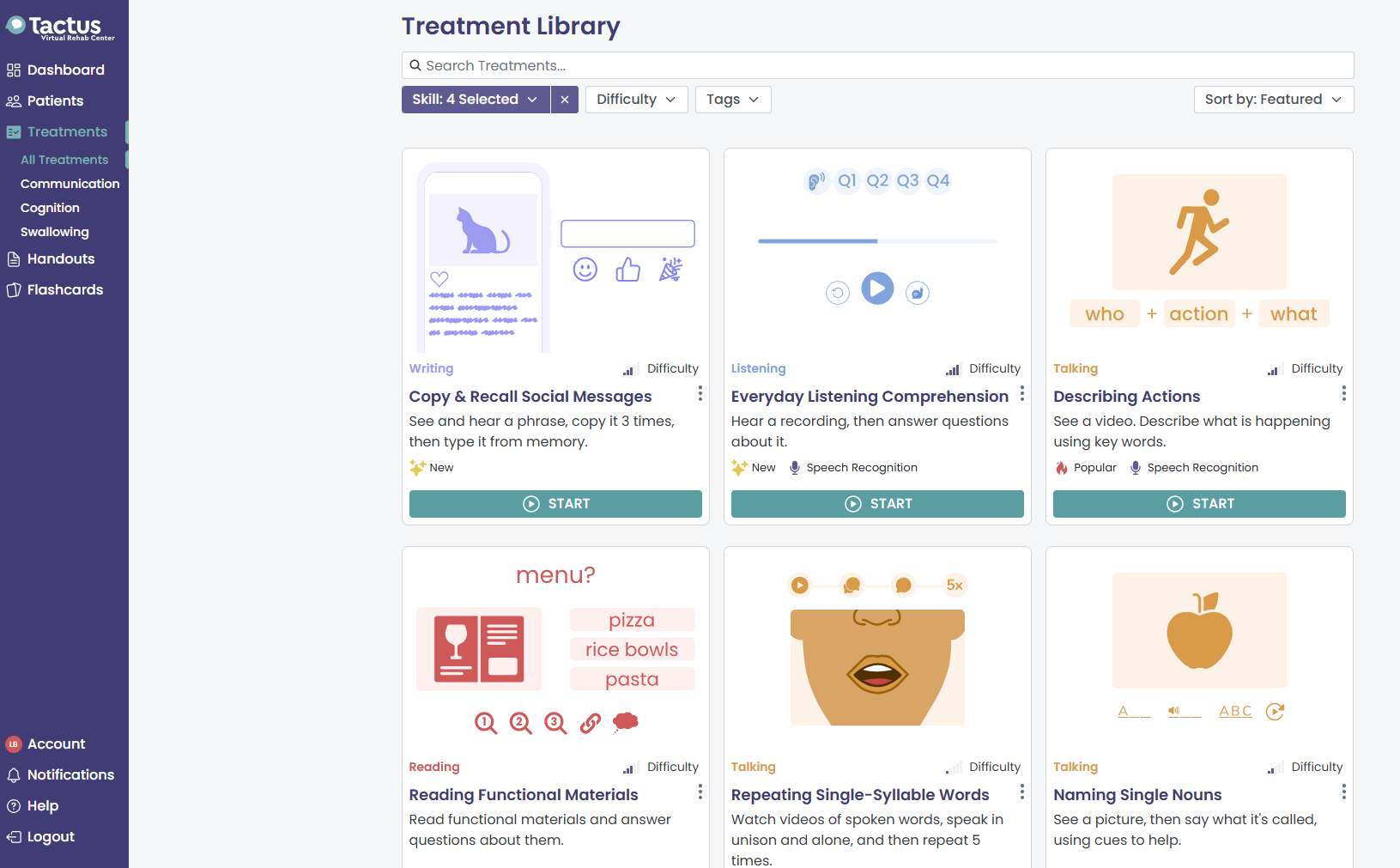 This is the easiest way to explore the variety of treatments available on the Virtual Rehab Center.